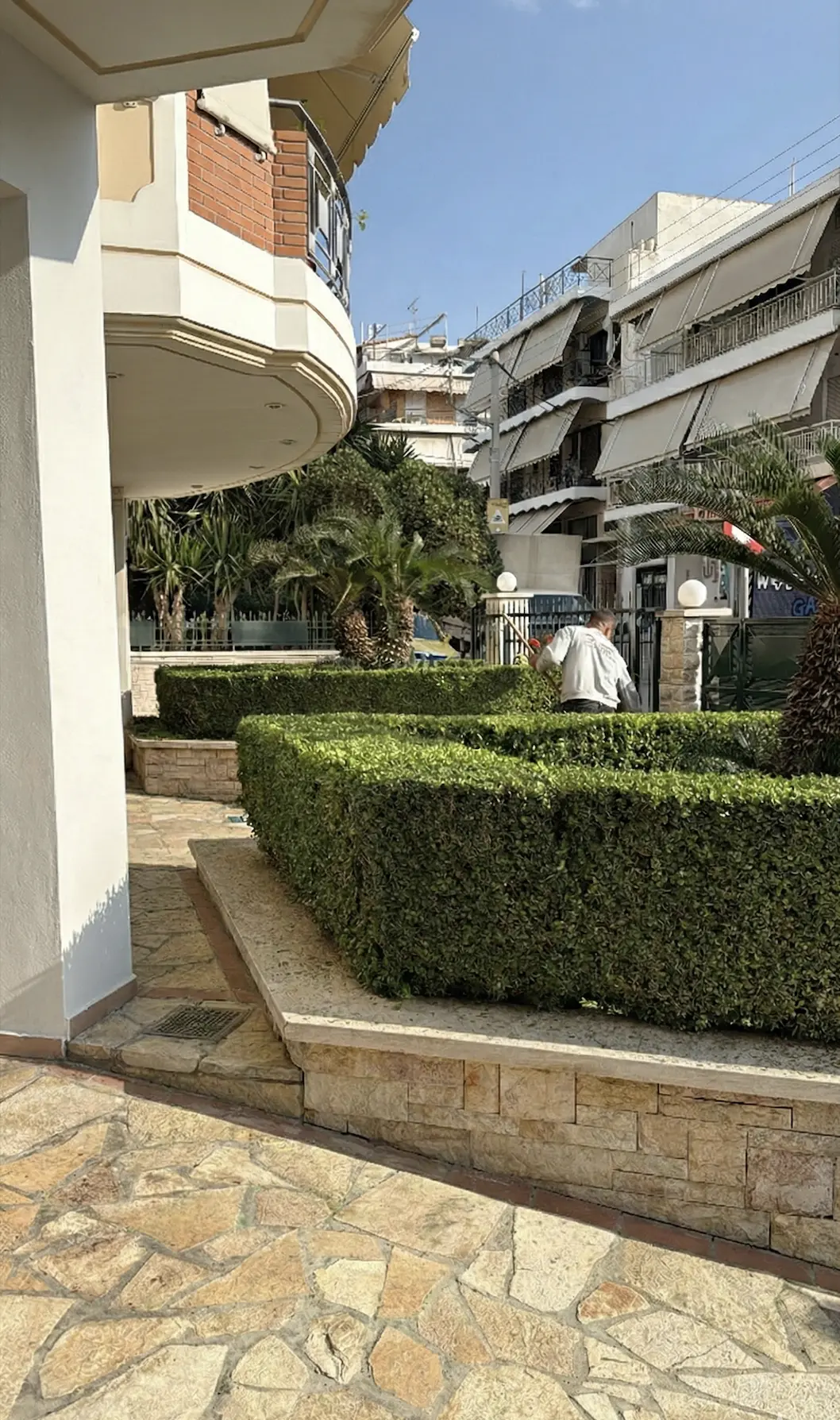 Πυκνή πράσινη γραμμή που ορίζει τον χώρο, προσφέρει ιδιωτικότητα και ενισχύει την αισθητική του δρόμου με καθαρή, συμμετρική μορφή.
